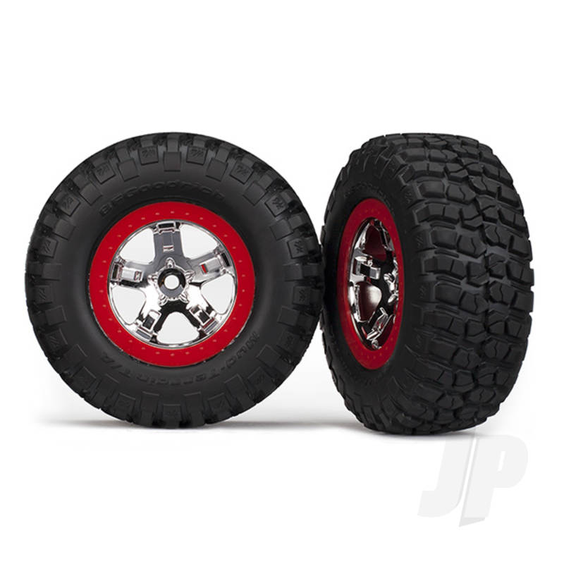 Traxxas Accessories/Car/Wheels & Tires Tyres & Wheels assembled glued (SCT chrome red beadlock style wheels BFGoodrich Mud-Terrain T / A KM2 Tyres foam inserts) (2pcs) (2WD front)