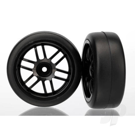 Tyres & Wheels assembled glued (Rally wheels black 1.9 Gymkhana slick Tyres) (2pcs)