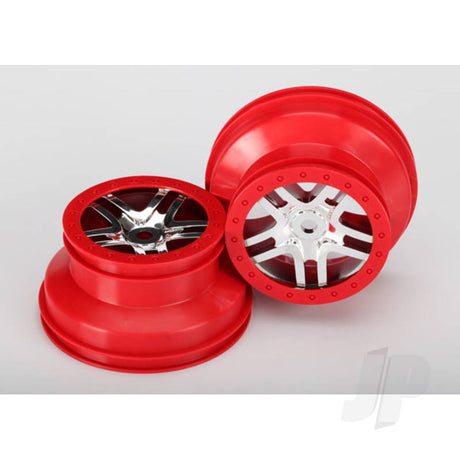 Wheels SCT satin chrome with red beadlock dual profile (2.2in outer 3.0in inner) (2pcs)