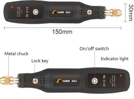 Mini Cordless Grinder/Drill Set with Tools & USB Charge Cable - Black