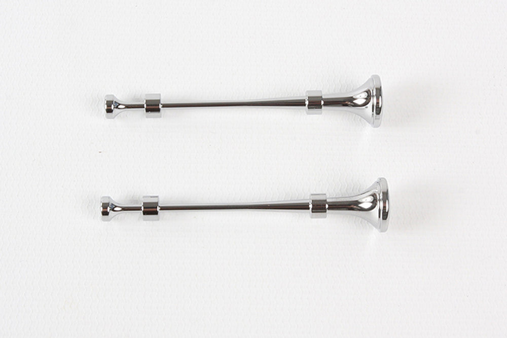 These are all-metal versions of the plated plastic horn parts seen on the King Hauler, Globe Liner and Grand Hauler radio control models. The metal parts are tough and the screw-attachment improves durability. The chrome surface also gives more luster and durability than standard plated parts.