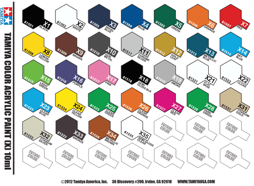 Enhance your models with Tamiya Colour Acrylic Paints. This paint is made from water soluble acrylic resins and comes in a very convenient 10 ml bottle.