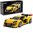 A detailed self-build brick model of the Renault Sport RS 01 which competes in the Group GT3 racing series and has a yellow and black colour scheme. This officially licensed model features printed pieces (without stickers) and manual driving, making it ideal for play and display alike.