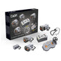 CaDA Power Upgrade Kit Pro features all the parts needed to add radio/remote control functionality to compatible CaDA models. The box includes a remote control, various motors, a servo, rechargeable battery, and all the connectors needed to make things work.