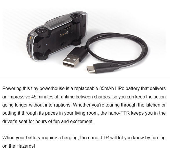 With a high-capacity LiPo battery providing an impressive 45 minutes of runtime, you"ll have plenty of time to sharpen your skills, whether you"re racing on the tabletop or just having fun around the house.