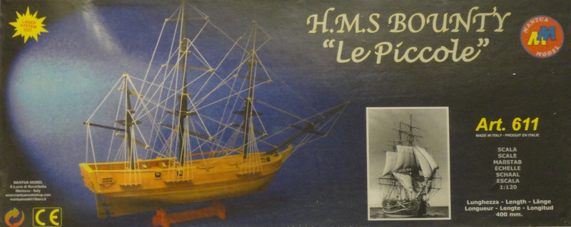 Mantua Model introduces a new type of simplified model boat kit. The HMS Bounty teaches you the basics of hull construction, planking and rigging. Each kit contains a laser cut keel, frames and other wooden parts, rigging line, pictorial assembly instructions and a display cradle