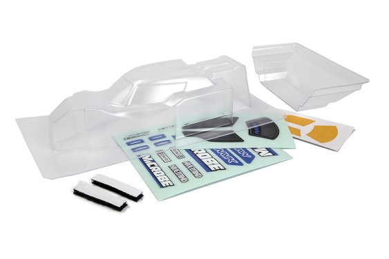 This replacement body is formed from light & flexible Polycarbonate material for increased durabilty over the painted version, and it is clear so you can paint it in your favorite colors using polycarbonate paint. Overspray film is included to make painting quick and simple, as well as a decal sheet to complete your custom look.
