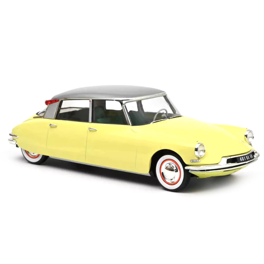 Norev Die Cast Collectables - 1:18 1960 Citroen DS 19 - Jonquille Yellow and Caravan Digue Panoramic