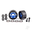 Wheels, wheelie bar, 6061-T6 aluminium (blue-anodised) (2)/ axle - wheelie bar - 6061-T6 aluminium (2)/ 10x15x4 ball bearings (4)
