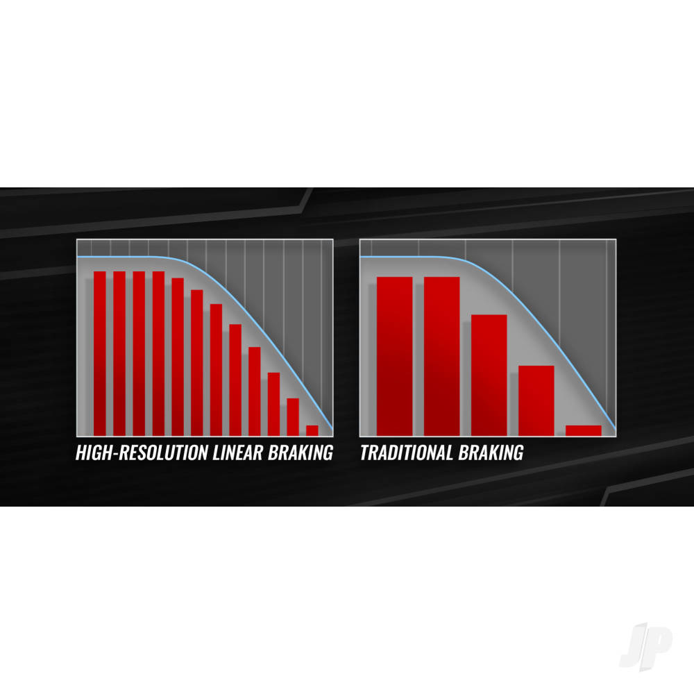 Velineon VXL-4s High-Resolution Linear Braking is a patent-pending Traxxas innovation that delivers next-level smoothness and precision. The High-Resolution communication loop allows instant response to the driver's input for powerful and intuitive linear braking feel. From feather touch speed correction to full-power late braking to overtake on the inside line of a corner, the driver stays fully connected and in control for a competitive edge on the track. The optional Traxxas Link app adds easy control over brake force to tune for different needs and conditions.