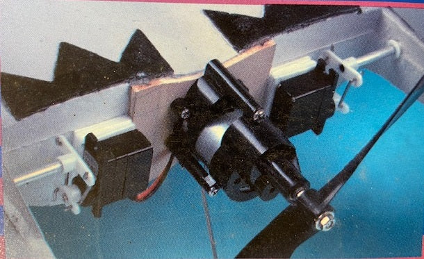 The included 370 motor with geardrive (3.67:1) and 7.5x5 propeller give ample and efficient power for the F-22 with an eight cell battery pack. Stabilizer control is solid and reliable due to our unique torque-rod and dual servo link assemblies.