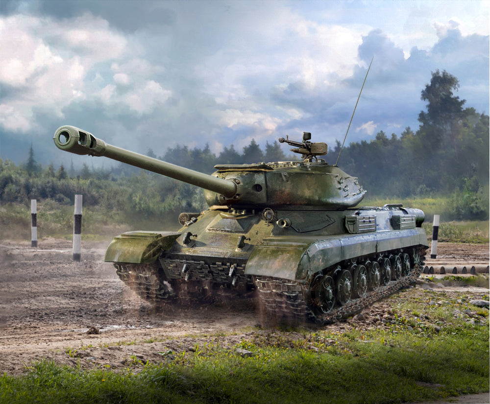The IS-4 Soviet heavy tank started development in 1943 and began production in 1946. Derived from the IS-2 heavy tank and part of the IS tank family (the 'IS' acronym is the anglicised initialism of Joseph Stalin - ИоÌÑиф СтаÌлин, Iosif Stalin), the IS-4 featured a longer hull and increased armour. Development started with the purpose of improving upon the earlier IS-2 model and incorporating captured enemy technology. This created a blend of IS-2 features and unique features not found in other Soviet tanks.