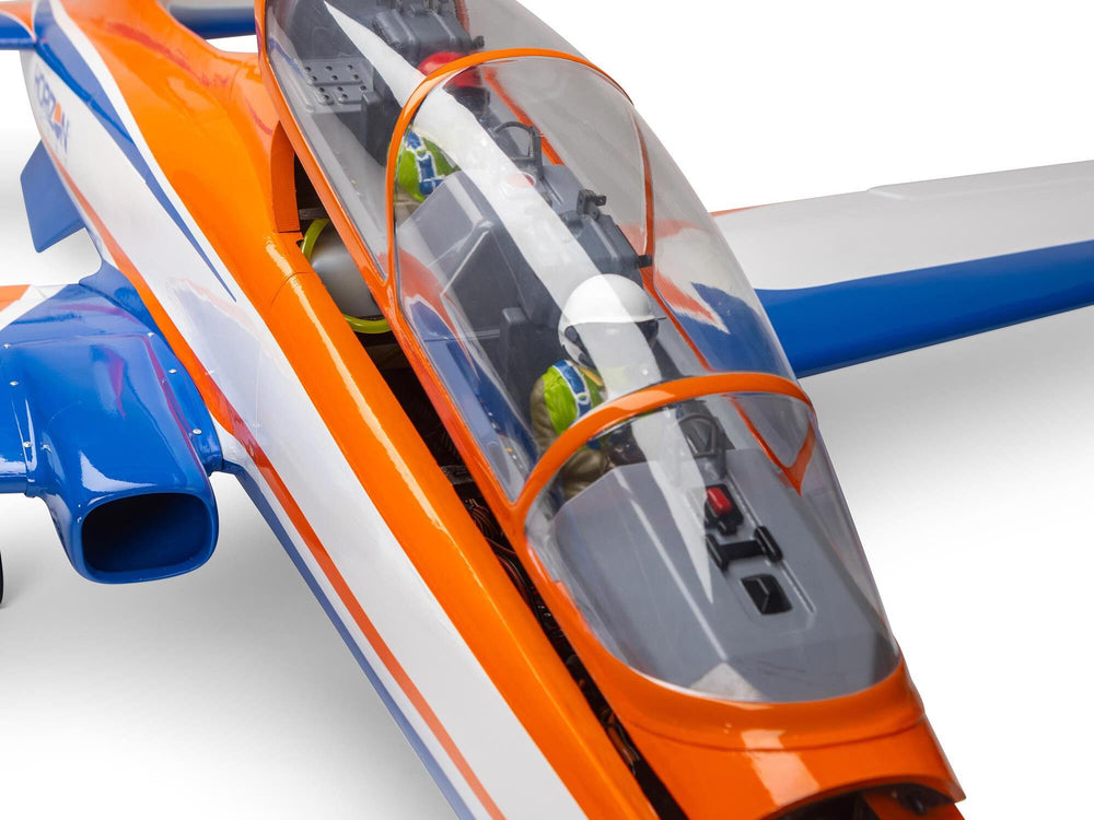 The first Hangar 9 turbine jet is a perfect way for experienced pilots to move into turbine-powered models. It's also ideal for seasoned jet pilots looking for great value in a well-behaved platform with excellent performance and handling. The full-scale Aermacchi MB-339 was designed and manufactured in the 1970's by Alenia Aermacchi SpA as a military jet trainer and light attack aircraft. This ARF version has been developed to meet the need for an attractive, easy to fly yet fully aerobatic jet model suitable for 60-85N size turbines. With this first-of-its-kind turbine powered jet model completion level, first time jet pilots get performance and flight versatility with low assembly time. Designed to be an attractive, easy to fly yet fully aerobatic jet, it features lightweight, balsa and plywood construction with carbon Fibre reinforcements and is finished in genuine UltraCote® film that's long lasting and easy to maintain. Designer and world-class pilot Ali Machinchy created the MB-339 with the right combination of attention to details and flight characteristics that Hangar 9 pilots expect. The Hangar 9 Aermacchi MB-339 60-85N Turbine 84" ARF model delivers an incredible in-flight experience with amazing durability.